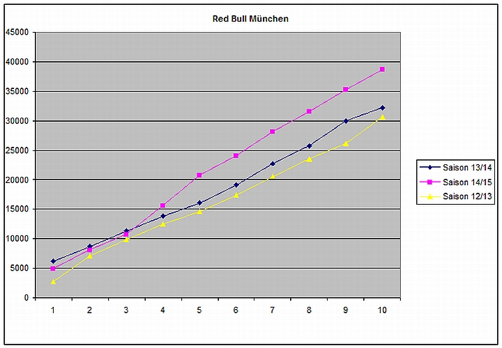 Zu den großen Gewinnern gehört auf den Fall Red Bull München. Fast 20 Prozent mehr Zuschauerspruch als im Vorjahr, was natürlich auch mit der sportlichen Aufwertung der Mannschaft zu tun hat. Trotzdem, ein Schnitt von 3863 Zuschauer lässt noch deutlich Raum nach oben.