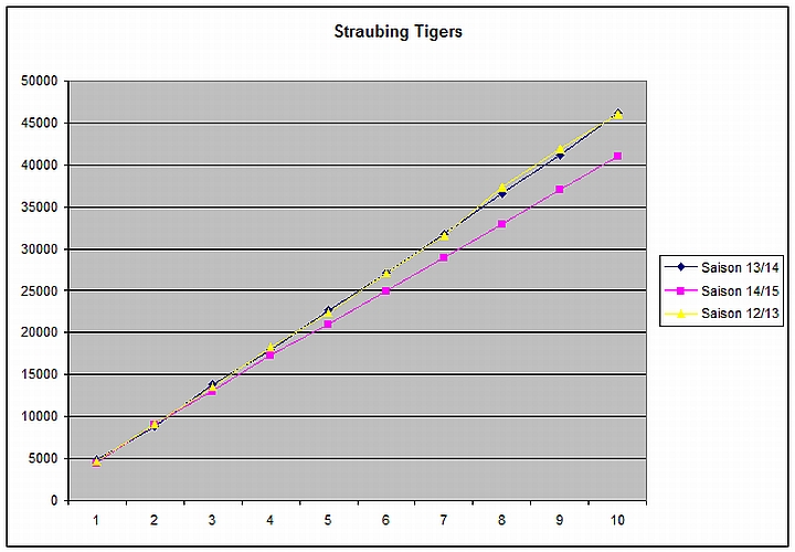 Die Zuschauerzahl hat zwangsläufig auch immer was mit Erfolg zu tun. Und der wohnt in dieser Saison nicht in Straubing. Das macht sich auch bei den rückläufigen Zahlen bemerkbar, wobei anzumerken ist, dass die Auslastung in Straubing immer ausgesprochen gut war. Aber 11 Prozent Zuschauerrückgang ist schon ganz schön happig. Gerade bei den kleinen Vereinen drückt das sofort auf den Etat.