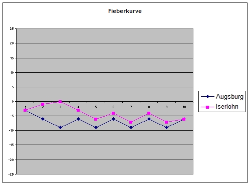 Now, that’s interesting. Warum? Viel in der Formtabelle so riesige Sprünge drin sind. Wie gesagt, dargestellt wird die Punkteausbeute aus den letzten zehn Partien. Ich wäre nicht unbedingt drauf gekommen, dass jetzt unbedingt die Roosters aus den letzten zehn Partien die meisten Punkte geholt hätten. Nürnberg stürzt ab, München macht ebenfalls einen gewaltigen Satz nach vorne. Wie sind diese Riesensätze zu interpretieren? Die Antwort ist naheliegend wie einfach: Die DEL geht in die entscheidende Phase der Hauptrunde und zur Zeit extrem ausgeglichen. Da fällt beispielsweise aus dieser Zehnerwertung eine Niederlage heraus (wird als -3 gewertet), dafür kommt ein Sieg dazu (+3). Und wenn die meisten Teams aus den letzten 10 Spielen um die 50 Prozent geholt haben, gibt es eben gewaltige Verschiebungen.