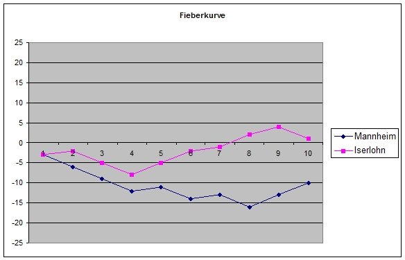 | Köln | 32 | 2 | 26 | 24 | Mannheim | 27 | -5 | 22 | 27 |
