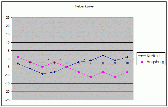 (Die Fieberkurven funktionieren wie folgt: Für jeden Punktgewinn geht es 1, 2 oder 3 Schritte nach oben, für jede glatte Niederlage drei nach unten.)