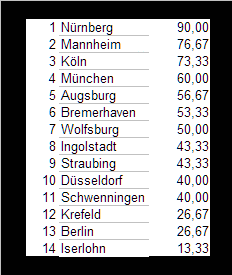 Percentage aus den letzten zehn Spielen