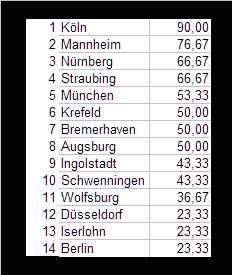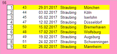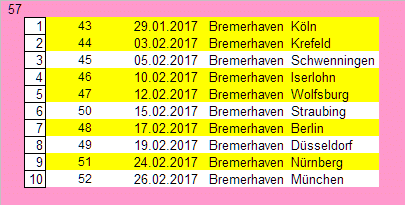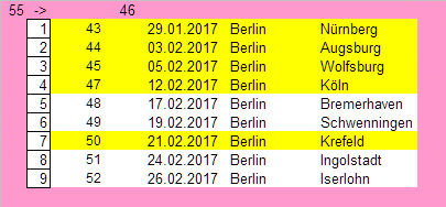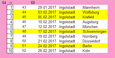 Hier geht es zunächst einmal nur um die Mannschaften, die zur Zeit auf einem Preplayoffplatz stehen. Gelb: Auswärtsspiele.