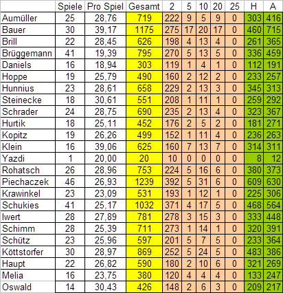 Spitzenspieltabelle