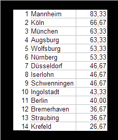 Mannheim – Wolfsburg 1:0 (glaub ich nicht)