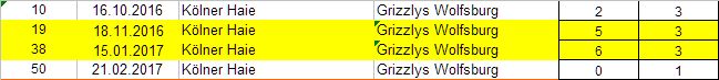 Zäumen wir den Fisch von Wolfsburger Seite auf, lässt sich festhalten: Gegen kein Team aus der Spitzengruppe schlossen die Grizzlys besser ab als die Haie. Aus Kölner Sicht muss man dann wohl angesichts dieses Duells sagen: Ausgerechnet die Grizzlys.