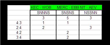 Wieder der kurz der Blick auf die Statistik. Wie sind Serien in den bisherigen Spielzeiten verlaufen, wenn sie eine ähnliche Entwicklung nahmen wie die aktuell laufenden?