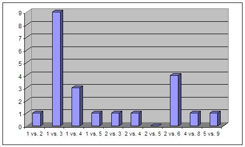 Das häufigst Duell im Finale liefern sich Platz 1 vs. Platz 3, die Paarung Erster gegen Fünfter gibt es erst zum zweiten Mal. Das erste Mal gab es dieses Duell in der Saison 2003/04. Hauptrundensieger Berlin hatte Heimrecht gegen die Lions, gewann das erste Spiel und verloren dann in der Best-of-Five die nächsten drei Partien.