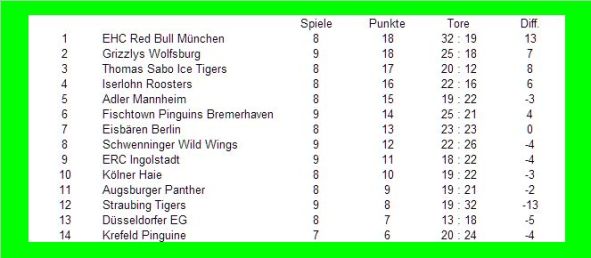 Die DEL-Tabelle nach Dienstantritt von Daum.