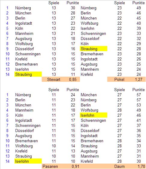 Die Tigers spielen in Iserlohn vor, und wieder einmal haben sie die Chance, im Sauerland endlich die Rote Laterne loszuwerden. Vor einer ähnlichen Situation standen sie schon bei ihrem letzten Besuch am Seilersee, damals hatte Rob Daum gerade seinen Dienst beim IEC angetreten und das Ruder herumgerissen, unverrichteter Dinge mussten die Niederbayern wieder nach Hause fahren. Diesmal ist allerdings klar, dass nicht die Roosters der Empfänger sein können. Für die Roosters gab es zuletzt nach zwei Siegen eine Niederlage in Nürnberg, knapp war die, aber das bringt auch keine Punkte. Die Tigers erreichen mit Iserlohn die Schlussstation einer kurzen Auswärtstournee über vier Stationen, die bisher die optimale Punktausbeute brachte durch Erfolge in Wolfsburg, Schwenningen und Krefeld. Iserlohn gewann die ersten beiden Spiele 4:3 n.V. zu Hause und 5:1 in Straubing.