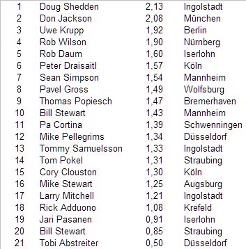 Dargestellt wird die durchschnittliche Punktzahl pro Spiel.