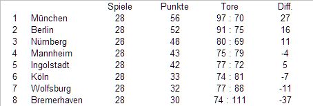 Schauen wir auf die Tabelle, die nur die Spiele der Viertelfinalteilnehmer untereinander berücksichtigt, und das finde ich ganz kurios, sähen die Paarungen genau so aus wie jetzt, nur bei der Paarung Ingolstadt/Mannheim wäre das Heimrecht vertauscht.