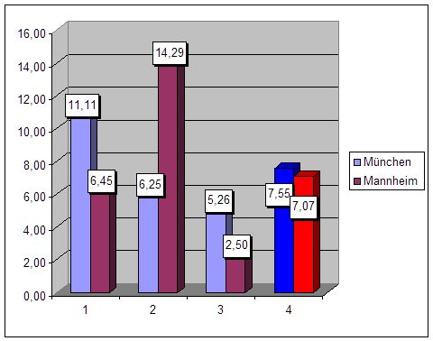 Dargestellt wird für alle beteiligten Mannschaften die Schusseffizienz in Spiel ein, zwei, drei und gesamt (4). Auffällig ist der groteske Unterschied bei den Eisbären, was Heim- und Auswärtsspiele betrifft. Das war schon so bei der Serie gegen Wolfsburg so. Also würden die Berliner mit zu Hause und auswärts mit zwei völlig unterschiedlichen Mannschaften auflaufen. Als Trainer wäre das für mich ein interessanter Ansatzpunkt für eine Analyse. Und bei den Ice Tigers scheint sich die Serie gegen Köln irgendwie zu wiederholen. Sie zeigten eine extrem schwache Chancenverwertung zu Beginn der Serie, um sich im Verlaufe der Serie immer mehr zu steigern. Spricht für die große Adaptionsfähigkeit der Mannschaft von Rob Wilson.