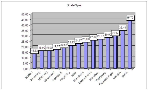 Schauen wir uns zunächst die Strafenverteilung an, wenn wir uns nach dem Gastteam richten. Wir erkennen die Friedensstifter aus Krefeld, die kommen, um zu kuscheln. Und die Eisbären fahren durch die Republik, um mal richtig die Sau rauszulassen.