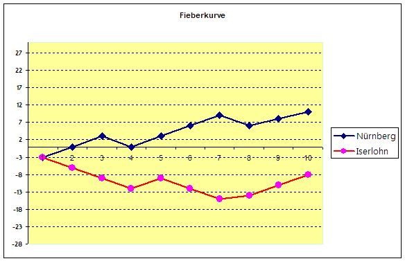 Gleich zweimal innerhalb von fünf Tagen treffen Nürnberg und Iserlohn aufeinander. 24 Punkte können die Roosters in den noch verbleibenden Spielen maximal holen, erfahrungsgemäß könnte das gerade so ausreichen, um es noch in die Preplayoffs zu schaffen.