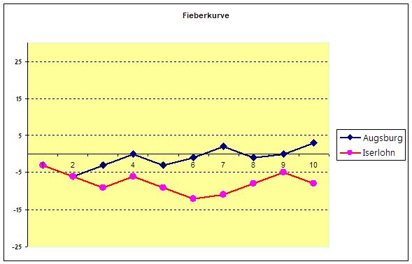 Der AEV ist in dieser Saison noch ohne Punktverlust gegen Iserlohn, die beiden Spiele im Sauerland gewann Augsburg 7:6 und 4:2, das erste Spiel im CFS 4:2.