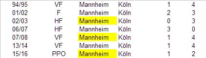 Es gab also bisher sieben Serien, sechs davon gewannen die Domstädter. Schauen wir uns die Serien näher an, wurde, wenn die beiden Teams im Halbfinale aufeinandertrafen, immer gesweept. Ganz interessant in diesem Zusammenhang: In Playoffserien hat Mannheim erst zweimal in Köln gewinnen können in all diesen Jahren.