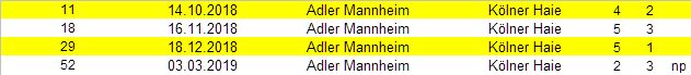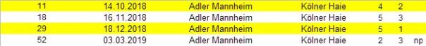 Die Adler gewannen beide Spiele in Köln und das erste Heimspiel. Im zweiten Heimspiel, als der HR-Sieg der Adler bereits feststand, es für die Haie aber um alles ging, gewann Köln, am letzten Spieltag 3:2 n.P. bei den Adlern. Und das war aus Kölner Sicht ein sehr wichtiger Erfolg, der das Heimrecht gegen Ingolstadt im Viertelfinale sicherte. Und es war das bisher einzige Spiel der Haie gegen Mannheim unter der Obhut von Dan Lacroix.