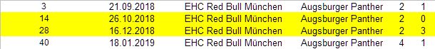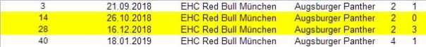 Die Münchner gewannen beide Heimspiele und das erste Auswärtsspiel in Augsburg. Der AEV holte zu Hause einen Sieg gegen die Landeshauptstädter.