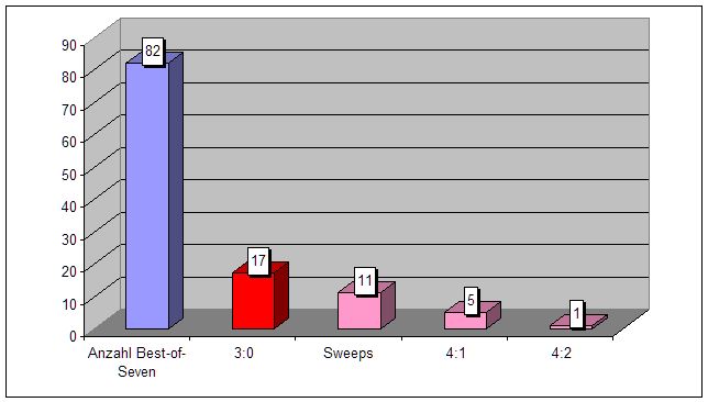Die Zahlen: In 82 Best-of-Seven-Serien der DEL standen 17 nach dem dritten Spiel 3:0. In elf Fällen führte das zu Sweeps, fünf Mal konnte sich das unterlegene Team noch immerhin einen Sieg schaffen, auf 2:4 konnte nur eine Mannschaften verkürzen. Das war Nürnberg in der Spielzeit 15/16 gegen Wolfsburg.