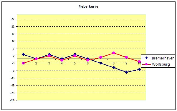 Wolfsburg hat die letzten beiden Partien verloren und ist inzwischen unter den Strich gesunken. Gibts die nächste Niederlage, könnte der Rückstand auf Platz zehn, je nach Ausgang der Partie in Krefeld, weiter anwachsen